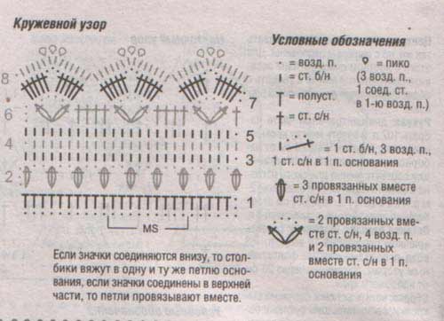 Заменять 1-ю п. каждого ряда на возд. п. подъема, число которых обозначено на схеме.