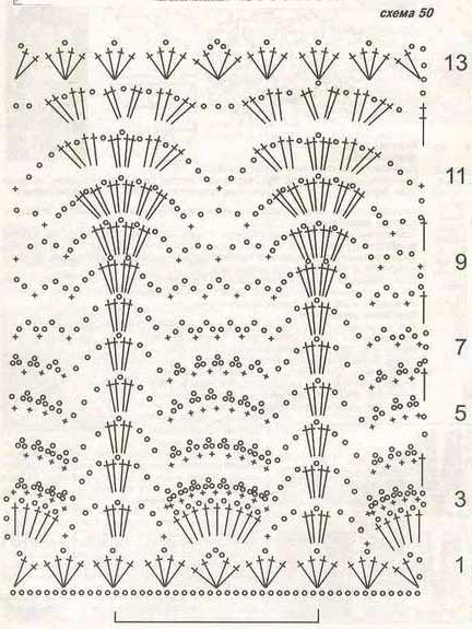 Основной узор нить цвета мяты: ст. с/н, при этом заменять 1-й ст. с/н на 3 возд. п. подъема.