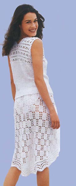 Описание работы: связать цепочку из 145 возд п. и 3 возд п. подъема (верхний край юбки) и вязать от