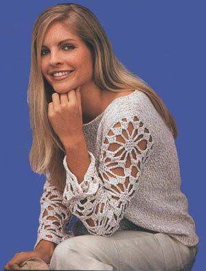 слегка припосадив окаты. Выполнить 6оковые швы и швы рукавов. Обвязать крючком край выреза