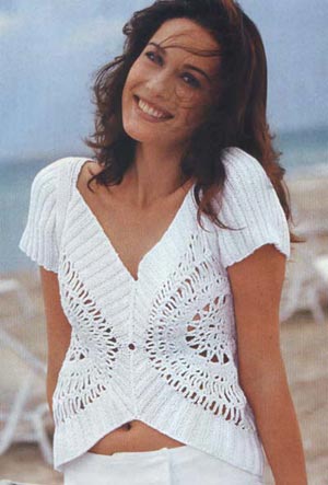Перед: сначала связать 2 кружевные вставки; для левой стороны с лицевой