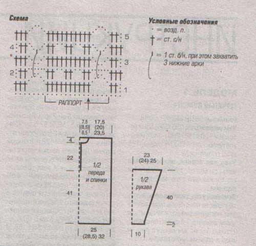и связать 2 р. ст. с/н, затем вязать основным узором. Для скосов рукава прибавить от начала основного