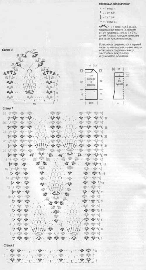 Внимание! Рукава вязать сверху вниз, кокетку для рукавов - на наборный край, кружевную кайму на