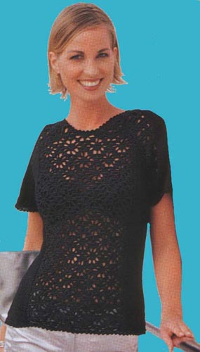 200 г черной Ораl (58% полиамида, 42% вискозы, 155 м/50 г); спицы № 3; крючок № 3,5.