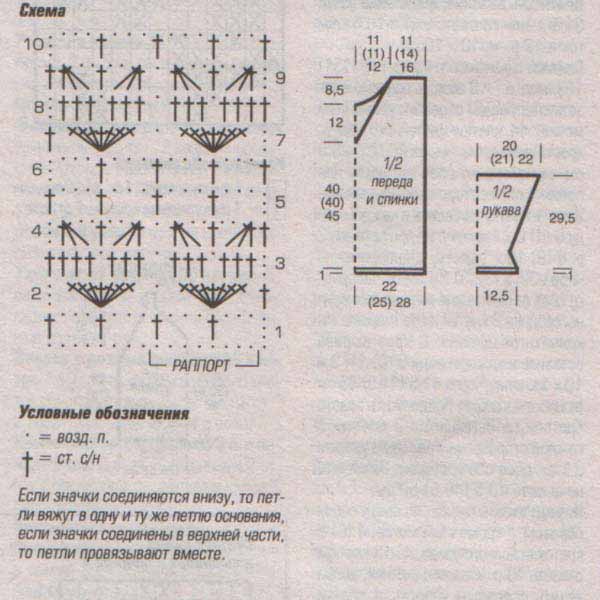 обозначено на схеме. Повторять с 1 го по 10-й р. или соответственно для рукавов повторить