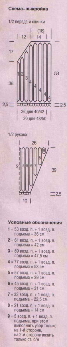 Перед/спинка: выполнить по схеме-выкройке соответствующее число узорных