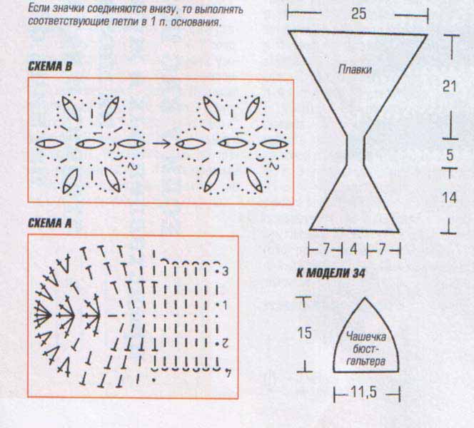 Прямой край обеих чашечек обвязать каймой, как для плавок,