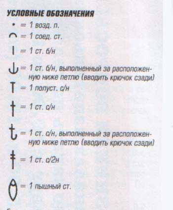 пышный столбик (6 ст. с/2н в 1 п. основания, вынуть крючок из петли, ввести его в 1-й ст. с/2н,