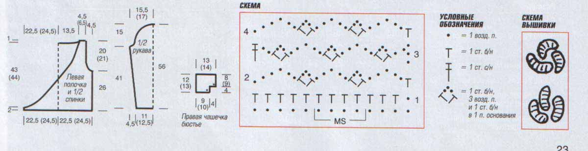 метки * на схеме). Нижний край каждой чашечки обвязать 6 р. из 38 ст.б/н,