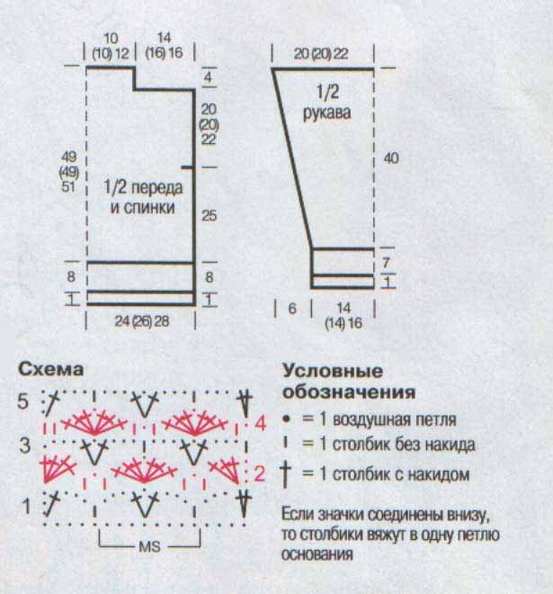 Рукава: набрать 50 (50) 59 п. и вязать, как спинку. Через 7 см от планки равномерно