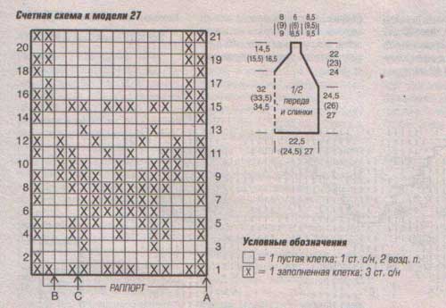 убавить для пройм с обеих сторон 8 (9) 9 клеток следующим образом: * на протяжении Зр.