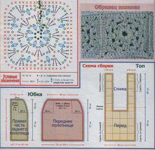 Спинка и перед: Связать 26 мотивов по схеме 2 .