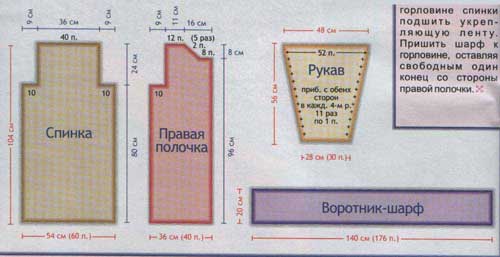 спинки подшить укрепляющую ленту. Пришить шарф к горловине,