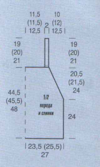Спинка: вязать так же, но закончить через 24 см = 45 р.