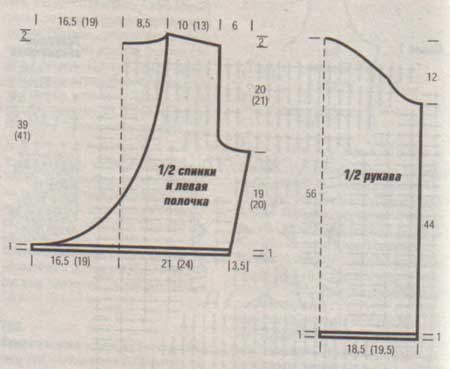 Левая полочка: набрать 45 (51) п. и начать вязать, как спинку. Выполнить с правой стороны
