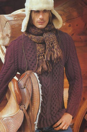 (950) 1000 (1050) г Ceres (50% шерсти, 50% альпаки, 78 м/50 г) цвета Cordouran; спицы № 5 и 2 вспом. спицы для узора «коса».