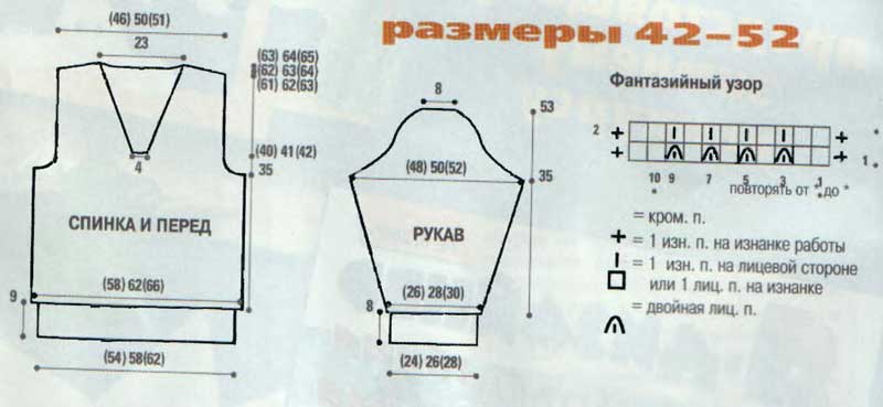 ПЛОТНОСТЬ ВЯЗАНИЯ: 23 п. и 32 р. фантазийным узором на спицах №4=10 х 10 см;