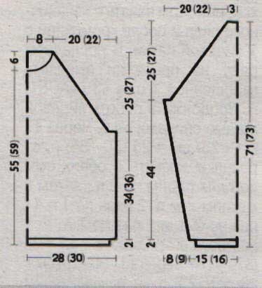 (21) раз по 1 декоративной убавке. Через 25 (27) см = 40 (44) р. от