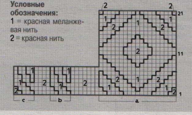 обозначены цвета, см. условные обозначения. Каждую полосу жаккардового узора, см.