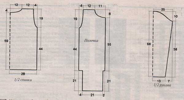 Плотность вязания: 18 п. х 27 р. = 10 х 10 см,