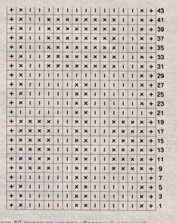 Вяжите полочку узором по схеме. Провязав 118 рядов по схеме,