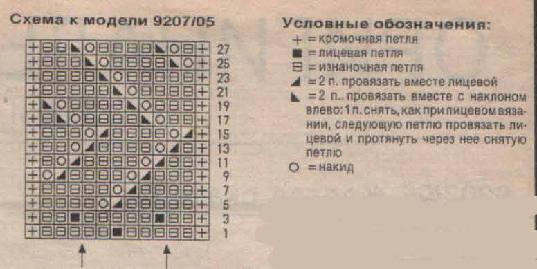 перед 1-й стрелкой, повторять раппорт между стрелками, заканчивать петлями после 2-й стрелки. В высоту повторять дпя полосы