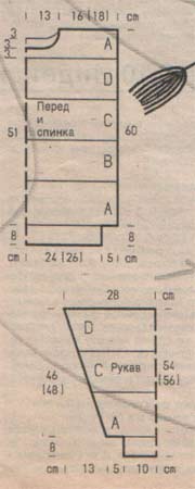 Плотность вязания: 24п. х 35р. = 10 х 10 см, связано рельефным узором спицами №4.