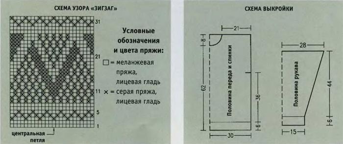 Пуловер с узором "зигзаг". По материалам журнала "Золотая коллекция вязания спицами".
