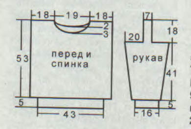 Спинка: вязать, как перед. Для выреза горловины закрыть средние 35 п. на 3 см выше, чем на переде,