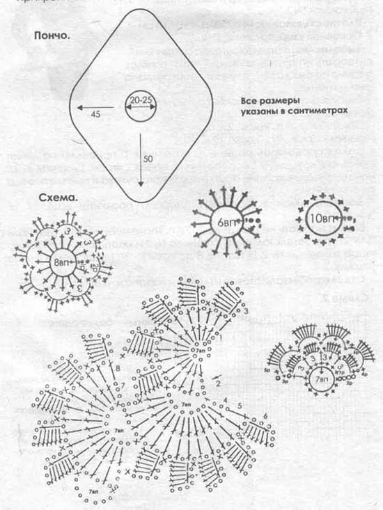 Сборка:выполнить плечевые швы; для планки горловины связать 6 розеток, соединить их