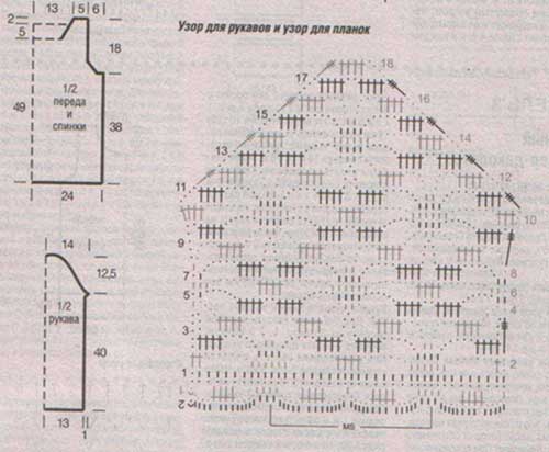 Рукава: связать крючком цепочку из 40 возд. п.+ 1 возд. п. подъема и вязать узором для рукавов.