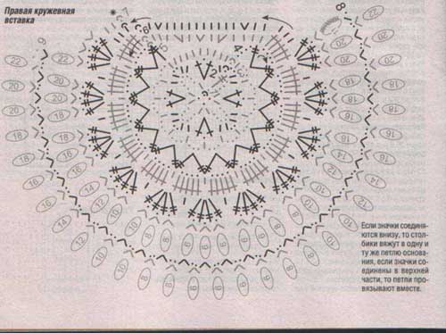 Правая кружевная вставка: связать крючком цепочку из 4 возд. п. и заключить ее 1 соед. ст.