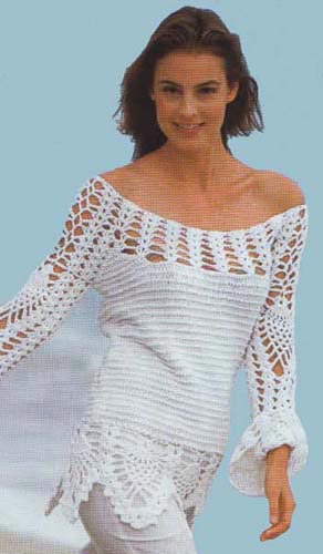 Внимание! Рукава вязать сверху вниз, кокетку для рукавов - на наборный край, кружевную кайму на