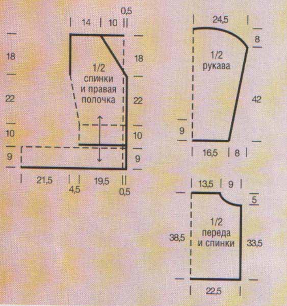 пуговиц (над 1 п. предыдущего ряда связать 3 возд. п.) Рукава сложить пополам