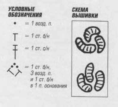 метки * на схеме). Нижний край каждой чашечки обвязать 6 р. из 38 ст.б/н,