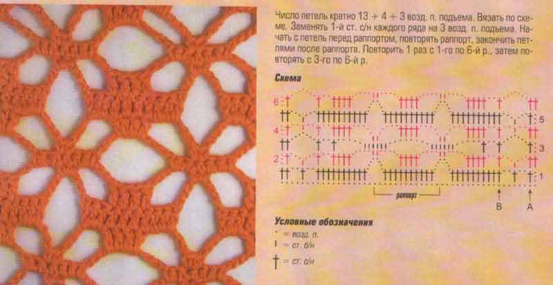 закончить по узору. Повторить 1 раз с 1-го по 6-й р., затем повторять с 3-го по 6-й р.