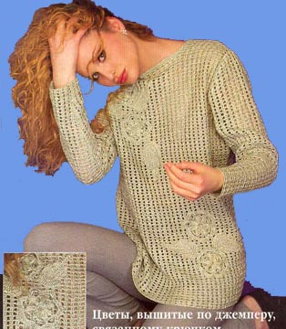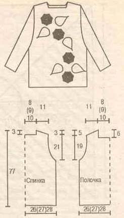 Сборка: сшейте плечевые и боковые швы, вшейте рукава. Горловину обвяжите ст. с/н. Свяжите 4 цветка